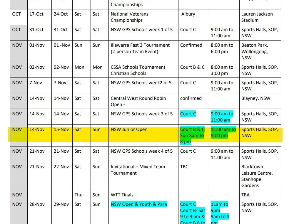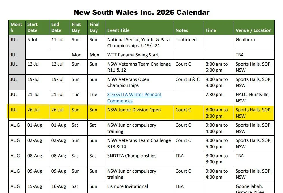 *For beginner players, the recommended competition to participate in is on 26th July “NSW Junior Division Open” and 15th November “NSW Junior Open” it is a division competition, so if you are playing competition for the first time please choose the lowest division.